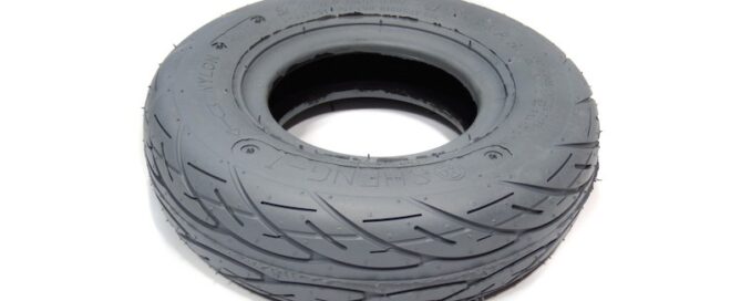 Cor Cinzento. Não deixa marca. Somente o pneu sem câmara e sem jante.
